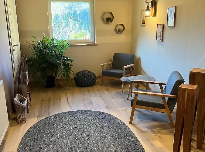 从Ferienhaus "Am Backes"到PutzfeldTeufelsloch步行只需25分钟就到了,设有厨房. 该别墅共有3间卧室,同时配备卫星频道平板电视,正餐区和休息区.